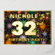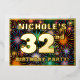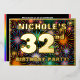 The front of this vibrant thirty-second birthday party foil invitation card design features a custom name, a large number “32nd”, the message “BIRTHDAY PARTY!”, and a border. The background of the front has a bold, multicolored bursting celebratory fireworks-inspired pattern. The back features personalised details about the event, such as the date, time, venue, and any other information that may be relevant. Customisable invitations like these might be a fun way to invite attendees to a birthday party/gathering being held to celebrate somebody’s 32nd birthday. [~Z0000602]