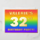 The front of this upbeat thirty-second birthday celebration foil invitation card design features an editable name, a large number “32nd”, the message “BIRTHDAY PARTY!”, and a border. The background of the front features a joyful, multicolored, rainbow spectrum inspired gradient pattern. The back features personalised details about the event, such as the date, time, venue, and any other useful information. Editable invitations like these might be a fun way to invite guests to a birthday party being held to celebrate somebody’s 32nd birthday. [~Z0000599]