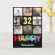 32nd Happy Birthday Photo Collage Modern Black Card with personalised name. For further customisation, please click the "Customise it" button and use our design tool to modify this template.