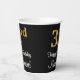 This stylish, elegant, and luxurious birthday themed paper cup design features a large ordinal number “33rd” having an imitation/faux gold-like appearance, plus the birthday greeting message “Happy 33rd Birthday,” and a custom name in a script-style font. The background is coloured black. Birthday themed paper cups like this might be fun to use at a party being held for somebody who is celebrating their thirty third birthday. [~Z0000538]