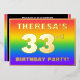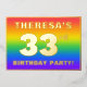 The front of this exciting thirty-third birthday party foil invitation card design features an editable name, a large number “33rd”, the message “BIRTHDAY PARTY!”, and a border. The background of the front features a joyful, multicolored, rainbow spectrum inspired gradient pattern. The back features personalised details about the event, such as the date, time, place/venue, and any other information that may be important. Customised invitations like these might be a fun way to invite guests/attendees to a birthday gathering being held to honour somebody’s 33rd birthday. [~Z0000599]