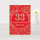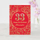 33rd Birthday Red and Gold Floral Pattern Birthday Card. For further customisation, please click the "Customise it" button and use our design tool to modify this template.
