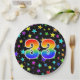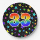 This cheerful, fun, and colourful paper plate design features a large number "33" containing a rainbow spectrum gradient inspired pattern colouring. The background features a colourful star shapes pattern. Fun paper plates like this might be used at a party being held to celebrate somebody’s 33rd birthday, or a couple’s thirty third anniversary, or some other 33rd event. [~Z0000493]