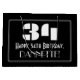 This 1920s/1930s look inspired vintage appearance birthday-themed gift bag design features a large art deco style inspired number "34", the message "Happy 34th Birthday,", a customisable name, and a border pattern consisting of thin lines. It features a black-coloured background. A gift bag like this might be used when giving a gift or present in honour of somebody’s 34th birthday. [~Z0000495]
