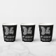 This vintage look and 1920s-1930s style inspired birthday-themed paper cup design features a large art deco inspired style number “34”, in addition to the birthday greeting message “Happy 34th Birthday,” and a custom name. The background is coloured black. 1920s-1930s style inspired birthday themed paper cups like this might be used at a birthday party in celebration of somebody’s 34th birthday. [~Z0000542]