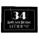 This vintage look 1920s/1930s appearance inspired birthday-themed gift bag design features a large art deco look inspired number "34", the message "Happy 34th Birthday,", a customisable name, and a border pattern consisting of thin lines. The background is coloured black. A birthday themed gift bag like this could be used to wrap a gift or present being given to celebrate somebody’s 34th birthday. [~Z0000496]