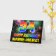 The front of this colorful, cheerful, and fun birthday greeting card design features a large number "34" and the message "HAPPY BIRTHDAY,", both having a rainbow spectrum gradient inspired pattern coloring, along with a bold yellow personalized recipient name. The front also has a multicolored background pattern inspired by bursting celebratory fireworks. The inside features an editable birthday greeting message, or could perhaps be cleared and left blank if a message is to be written by hand instead. An exciting customizable birthday card like this might be a fun way to send a message celebrating somebody’s thirty fourth birthday. [~Z0000471]