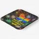 This fun and bold birthday themed paper plate design features a large number “34” with a colourful rainbow spectrum inspired gradient pattern, along with the message “HAPPY 34th BIRTHDAY,”, and a customisable name. The background of the front features an eye-catching, multicolored pattern inspired by bursting celebratory fireworks. Joyful birthday themed paper plates like this might be used at a birthday party celebrating somebody’s 34th birthday. [~Z0000604]