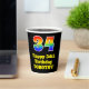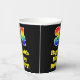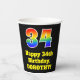 This exciting and colourful birthday themed paper cup design features a large number “34” with a rainbow spectrum gradient inspired pattern, along with the message “Happy 34th Birthday,”, and a customisable name. It also has a black-coloured background. Vibrant, colourful paper cups like this might be fun to use at a birthday celebration/party being held to honour somebody’s 34th birthday. [~Z0000537]