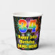 34th Birthday: Fun Fireworks Pattern + Rainbow 34 Paper Cups
