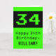 34th Birthday: Nerdy / Geeky Style "34" and Name Card