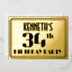 The front of this elegant thirty-fourth birthday party/celebration foil invitation card design features a personalised name, an art deco look inspired number “34th”, the message “BIRTHDAY PARTY”, and a multi-line border. The back features personalised details about the event, such as the venue/place, date, time, and any other information that may be important. Elegant, luxurious, customised invitations like these might be used to invite attendees to a birthday gathering being held in celebration of somebody’s 34th birthday. [~Z0000606]