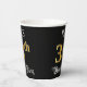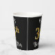 This opulent and ornate birthday-themed paper cup design features a personalized name and the message “34th Birthday Party”. The large number “34th” has a faux/imitation gold-inspired coloring pattern, and the words “Birthday Party” are in elegant script-style text. The background is colored black by default (although it can be customized). Fancy, elegant paper cups like this might be useful at a birthday party/celebration being held in celebration of somebody’s 34th birthday. [~Z0000567]