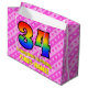 34th Birthday: Pink Stripes & Hearts, Rainbow # 34 Large Gift Bag