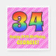 34th Birthday: Pink Stripes & Hearts, Rainbow # 34 Napkin
