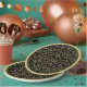 This cool design is a black and gold random number pattern with the milestone number 35 repeated in varied sizes and angles. The design is trimmed with a gold ring around the rim.