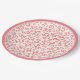 This cool design is a coral and white random number pattern with the milestone number 35 repeated in varied sizes and angles.   The design is trimmed with a coral ring around the rim.