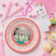 35 Your Photo Random Number Pattern Coral/White Paper Plate