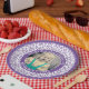 35 Your Photo Random Number Pattern Purple/White Paper Plate