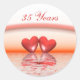 Stickers with my design of two coral hearts floating on the water under a rainbow. Customisable text says "35 Years".