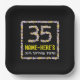 This floral, nature-inspired birthday themed paper plate design has a customisable name, plus the message “35th Birthday Party!”. The large number “35” plus the border both feature flower icons. Paper plates like these might be used when celebrating somebody’s thirty-fifth birthday, or some other 35th event or anniversary. [~Z0000655]