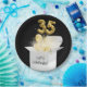 Gold balloons with sparkles and ribbons in a white box on black background for 35th birthday party.