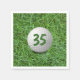Number 35 on white golf ball on green grass for golfer's birthday party.