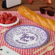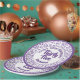 This numeric design is a purple and white random number pattern with milestone number 35 repeated in varied sizes and angles. Your text is printed in the white circle in the centre. The design is trimmed with white and purple rings around the rim.