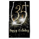 Gold sparkler on black background with gold confetti for 35th birthday.