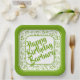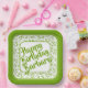 This numeric design has a green and white random number pattern with a green milestone number 35 repeated in varied sizes and angles. There is a white area in the centre for your text and green-and-white squares around the rim.