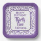 This unique numeric design features a purple and white random number pattern with the milestone number 35 displayed in various sizes and angles. A white rounded square serves as the centre for your text, surrounded by purple and white elements.