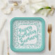 35th Party Random Number Pattern Teal/White Paper Plate