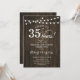 Rustic design with dark brown wood pattern and fairy string lights. Features script elegant font. Cheers to 35 years! Can be personalized into any year of marriage! Message me if you need further customization.