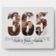 Celebrate your first year together with this personalized "365 Days of Love" photo plaque, a stunning custom gift perfect for anniversaries, weddings, or relationship milestones. Featuring bold “365” typography filled with three cherished personal photos, this modern design is framed by soft gray "Days of Love" text and customizable names with an "EST." date for a romantic, elegant touch. The sleek off-white background and professional layout give this tabletop plaque a clean, contemporary look that blends effortlessly with any room décor. Whether it’s a surprise for your partner or a meaningful gift for a couple, this one-of-a-kind keepsake transforms your memories into a daily reminder of love, laughter, and shared moments. A beautiful, personalized photo display that stands out on shelves, desks, or nightstands, it’s a heartfelt way to mark 365 unforgettable days together in a stylish, lasting format that’s both decorative and sentimental.