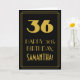 The front of this 1920s/1930s style inspired and vintage look birthday greeting card design features a large art deco style inspired number "36", the message "HAPPY 36th BIRTHDAY,", a customisable name, and a border pattern consisting of lines. The background of the front is coloured black. The inside features a customisable birthday greeting message, or could perhaps be cleared and left blank if a message is to be written by hand instead. A personalised birthday card like this might be a fun way to send birthday wishes to somebody who is celebrating their thirty sixth birthday. [~Z0000502]