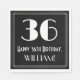 This 1920s/1930s style inspired and vintage look birthday-themed paper napkin design features a large art deco look inspired number "36", the message "Happy 36th Birthday,", a personalised name, and a border pattern consisting of thin lines. Fun, personalised paper napkins like this might be used at a birthday celebration being held in honour of somebody’s thirty sixth birthday. [~Z0000461]