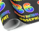 This fun, cheerful, and colourful birthday themed wrapping paper design features a large number "36" and the message "HAPPY BIRTHDAY,", both coloured with a rainbow spectrum gradient inspired pattern, along with a bold yellow personalised recipient name. The background is coloured black. Fun wrapping paper like this might be used when giving a gift or present in honour of somebody’s thirty sixth birthday. [~Z0000475]