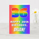 The front of this vibrant and exciting birthday-themed greeting card design features a large number “36” having a rainbow spectrum inspired gradient pattern. It also features the message “HAPPY 36th BIRTHDAY,”, and an editable name. The background of the front also has a cheerful multicolored rainbow spectrum gradient pattern. The inside has an editable birthday greeting message, or could perhaps be cleared and left blank if a message is to be written by hand instead. A cheerful, personalized birthday greeting card like this might be sent to celebrate somebody’s thirty-sixth birthday. [~Z0000570]