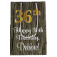 36th Birthday: Elegant Faux Gold Look #, Faux Wood Medium Gift Bag