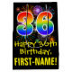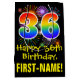 This fun, colourful, and exciting birthday-themed gift bag design features a large number "36" with a rainbow spectrum gradient inspired pattern, along with the message "Happy 36th Birthday,", and a custom recipient name. It also has a colourful bursting celebratory fireworks inspired background pattern. A gift bag like this might be used when giving a gift or present in honour of somebody’s thirty sixth birthday. [~Z0000509]