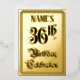 The front of this fancy thirty-sixth birthday party foil invitation/announcement card design features the message “36th Birthday Celebration” in elaborate script-style text. It also features a customisable name. The back features personalised details about the event, such as the date, time, location/venue, and any other useful information. Elaborate, opulent, personalised invitations like these might be used to invite guests to a birthday celebration/party being held in celebration of somebody’s thirty-sixth birthday. [~Z0000596]