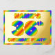 The front of this joyful and exciting thirty-sixth birthday celebration/party foil invitation card features a custom name, a large number “36th”, the message “BIRTHDAY PARTY!”, and a border, all featuring an eye-catching, multicolored, rainbow spectrum inspired gradient pattern. The back features personalised details about the event, such as the date, time, location/venue, and any other information that may be important. Fun, vibrant, personalised invitations like these might be used to invite guests to a birthday gathering being held to honour somebody’s 36th birthday. [~Z0000593]