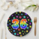This cheerful, fun, and colourful paper plate design features a large number "36" containing a rainbow spectrum gradient inspired pattern colouring. The background features a colourful star shapes pattern. Fun paper plates like this might be used at a party being held to celebrate somebody’s 36th birthday, or a couple’s 36th anniversary, or some other 36th event. [~Z0000493]