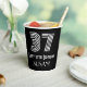 This vintage appearance and 1920s/1930s style inspired birthday themed paper cup design features a large art deco inspired appearance number “37”, in addition to the birthday greeting message “Happy 37th Birthday,” and a custom name. It also has a black-coloured background. Vintage appearance birthday themed paper cups like this might be used at a birthday party for somebody who is celebrating their thirty seventh birthday. [~Z0000542]