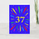 An explosive 37th birthday card! What a wonderful way to send birthday greetings. The number 37 in bright yellow with an explosion of bright colours and stars.