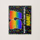 This cheerful and joyful birthday themed jigsaw puzzle design features a large number “37” with a multicolored rainbow spectrum inspired gradient pattern, along with the message “HAPPY 37th BIRTHDAY,”, and an editable recipient name. The background features an upbeat, colourful pattern featuring star shapes of various sizes. An exciting, customised birthday puzzle like this might be a fun way to deliver a birthday greeting message to somebody who is celebrating their thirty-seventh birthday. [~Z0000607]