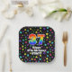 This colourful and vibrant birthday themed paper plate design features a large number “37” having a rainbow spectrum gradient inspired pattern. It also features the message “Happy 37th Birthday,”, and a customisable name. The background features a vibrant and colourful star field inspired pattern. Cheerful paper plates like this might be fun to use at a party in honour of somebody’s 37th birthday. [~Z0000582]