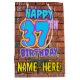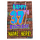 The front of this fun birthday gift bag design features the message “HAPPY 37TH BIRTHDAY,” having a colourful, vibrant, graffiti and urban street art inspired appearance, along with a personalised recipient name. The background features a pattern inspired by the look of a brick wall. A birthday themed gift bag like this might be a fun way to wrap a gift or present being given to celebrate somebody’s 37th birthday. [~Z0000536]
