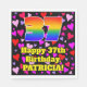 This fun and colourful birthday paper napkin design features a large number “37” having a rainbow spectrum gradient inspired pattern. It also features the message “Happy 37th Birthday,”, and a customisable name. The background features a pattern of heart shapes with colours like purple, pink, and red. Friendly, happy paper napkins like this might be fun to have at a birthday party/celebration being held in celebration of somebody’s thirty seventh birthday. [~Z0000550]