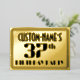 The front of this luxurious thirty-seventh birthday party foil invitation card design features a customisable name, an art deco look inspired number “37th”, the message “BIRTHDAY PARTY”, and a border pattern consisting of lines. The back features personalised details about the event, such as the place/venue, date, time, and any other information that may be useful. Stylish, luxurious, customised invitations like these might be used to invite guests to a birthday gathering being held in celebration of somebody’s 37th birthday. [~Z0000606]